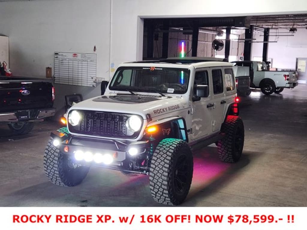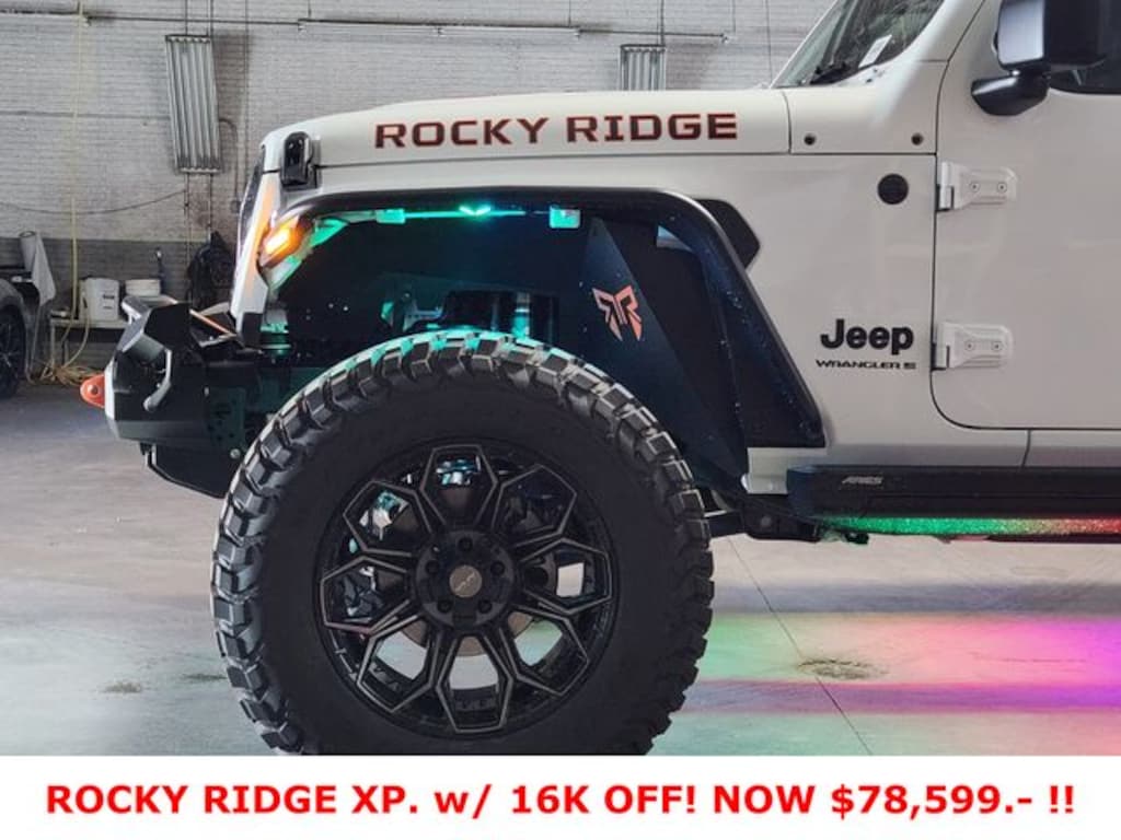 3.5 Inch Suspension Lift System FOX 2.0 Performance Series Shocks 20 inch Black Off Road Wheels (Exch) 37 inch Premium Mud Terrain Tires (Exch) Mopar Speedo Calibration and Whipple Transmission Calibration Fender Flares & Inner Liners Power Running Boards Leather Seat Covers with Custom Stitch Premium Sound System by Rockford Fosgate All-Weather Floor Mats Premium Front Bumper Replacement With DOT/SAE Fog Lighting & LED Lighting RGB Bluetooth Rock Lights Replacement Rear Bumper with LED Lighting Custom Graphics Package Swing-Out Rear Tire Carrier RGB Underbody Lights Tinted Front Windows Rocky Ridge Windshield Banner Rocky Ridge Exterior Badging FMVSS Compliant 3 Year / 36,000 Mile Warranty. Bright White Clearcoat 2025 Jeep Wrangler Willys ROCKY RIDGE XP ROCKY RIDGE XP 4WD 8-Speed Automatic 3.6L V6 24V VVT ABS brakes, Compass, Electronic Stability Control, Illuminated entry, Low tire pressure warning, ParkView Rear Back-Up Camera, Remote keyless entry, Traction control. Price includes dealer added accessories.