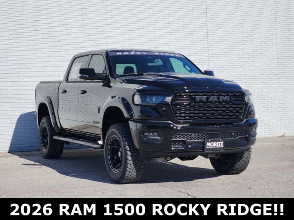 6 inch Suspension Lift System 20 inch Rocky Ridge Wheels 35 inch Premium All Terrain Tires (Exch) Speedometer Calibration Body Color Fender Flares Black Wheel-To-Wheel Side Steps Performance Exhaust with Black Exhaust Tips Leather Seat Covers with Custom Stitch Center Console Storage Safe All-Weather Floor Mats Rocky Ridge Windshield Banner Rocky Ridge Exterior Badging FMVSS Compliant 3 Year / 36,000 Mile Warranty. New Price! Diamond Black Crystal Pearlcoat 2026 Ram 1500 Big Horn/Lone Star ROCKY RIDGE ROCKY RIDGE 4WD 8-Speed Automatic HEMI 5.7L V8 Multi Displacement VVT eTorque 2026 RAM 1500 ROCKY RIDGE, 3 Rear Seat Head Restraints, 3.92 Rear Axle Ratio, 4 Way Front Headrests, 4-Wheel Disc Brakes, 4G LTE Wi-Fi Hot Spot, 6 Speakers, ABS brakes, Active Cruise Control, Air Conditioning, Alloy wheels, AM/FM radio, Apple CarPlay/Android Auto, Auto High-beam Headlights, Bucket Seats, Cloth Bucket Seats, Compass, Connectivity - US/Canada, Delay-off headlights, Driver door bin, Dual front impact airbags, Dual front side impact airbags, Electronic Stability Control, Front Bucket Seats, Front fog lights, Front reading lights, Front wheel independent suspension, Fully automatic headlights, Global Telematics Box Module, GPS Antenna Input, Heated door mirrors, Illuminated entry, Integrated Center Stack Radio, Low tire pressure warning, Manual Adjust 4-Way Driver Seat, Manual Adjust 4-Way Front Passenger Seat, Manual Folding Exterior Mirrors, Occupant sensing airbag, Outside temperature display, Overhead console, Panic alarm, ParkView Rear Back-Up Camera, Power steering, Power windows, Quick Order Package 27Z Big Horn, Radio data system, Radio: Uconnect 5 W with 8.4" Display, RAM Grille Badge - Chrome, Rear anti-roll bar, Rear step bumper, Remote keyless entry, Supplier Part Tracking (J-1), Tachometer, Telescoping steering wheel, Traction control, Trip computer, USB Host Flip, Variably intermittent wipers. Prices do not include tax, title and license fees.$3500 - 2026 National Retail Bonus Cash . Exp. 03/31/2026 Price includes dealer added accessories.