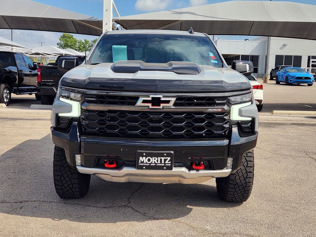 Certified. Slate Gray Metallic 2025 Chevrolet Silverado 1500 ZR2 4WD 10-Speed Automatic EcoTec3 6.2L V8 Bluetooth, Backup Camera, The Moritz Promise LIMITED LIFETIME POWERTRAIN PROTECTION PLAN See dealer for details, 10-Speed Automatic, 4WD, Jet Black/Graystone Leather, 10-Way Power Driver Seat w/Lumbar, 10-Way Power Passenger Seat Adjuster w/Lumbar, 12.3" Multicolor Reconfigurable Digital Display, 120-Volt Bed Mounted Power Outlet, 120-Volt Interior Power Outlet, 15" Diagonal Multicolor Head-Up Display, 2 USB Data Ports, 2nd Row Heated Outboard Seats, Adaptive Cruise Control, All-Weather Floor Liner (LPO), Alloy wheels, Apple CarPlay/Android Auto, Auto-Dimming Inside Rear-View Mirror, Auto-dimming Rear-View mirror, Automatic temperature control, Auxiliary External Transmission Oil Cooler, Bed View Camera, Block heater, Bluetooth® For Phone, Brake assist, Chevytec Spray-On Black Bedliner, Color-Keyed Carpeting Floor Covering, Deep-Tinted Glass, Driver Memory, Dual Rear USB Ports (Charge Only), Electric Rear-Window Defogger, Electronic Cruise Control, Electronic Stability Control, Electronic Transmission Range Selector Shifter, External Engine Oil Cooler, EZ Lift Power Lock & Release Tailgate, Floor Mounted Center Console, Following Distance Indicator, Forward Collision Alert, Front anti-roll bar, Front Bucket Seats, Front LED Fog Lamps, Front Rain-Sensing Wipers, Front wheel independent suspension, Fully automatic headlights, Garage door transmitter, HD Surround Vision, Heated Driver & Front Outboard Passenger Seats, Heated Steering Wheel, Heavy-Duty Air Filter, High Gloss Black Mirror Caps, Hill Descent Control, Hitch Guidance, Hitch Guidance w/Hitch View, Illuminated entry, In-Vehicle Trailering System App, Integrated Trailer Brake Controller, IntelliBeam Automatic High Beam On/Off, Keyless Open & Start, Lane Keep Assist w/Lane Departure Warning, LED Cargo Area Lighting, Manual Tilt/Telescoping Steering Column, Multi-Flex Tailgate, Off-Road Assist Steps (LPO), OnStar Services Capable, Outside Heated Power-Adjustable Mirrors, Perforated Leather Seat Trim, Performance Red Recovery Hooks, Perimeter Lighting, Power Front Passenger Windows w/Express Up/Down, Power Front Windows w/Driver Express Up/Down, Power Rear Windows w/Express Down, Power Sliding Rear Window w/Rear Defogger, Power Tilt & Telescoping Steering Column, Preferred Equipment Group 3LT, Rear Camera Mirror, Rear Cross Traffic Braking, Rear Pedestrian Alert, Rear step bumper, Rear Wheelhouse Liners, Remote Vehicle Starter System, Safety Alert Seat, Security system, SiriusXM w/360L Trial Subscription, Speed-sensing steering, Standard Tailgate, Steering Wheel Audio Controls, Steering wheel mounted audio controls, Technology Package, Teen Driver, Telescoping steering wheel, Theft Deterrent System (Unauthorized Entry), Tire Pressure Monitoring System, Traction control, Trailer Camera Provisions, Trailer Side Blind Zone Alert, Trailering Package, Ultrasonic Front & Rear Park Assist, Universal Home Remote, Up-Level Rear Seat w/Storage Package, Ventilated Driver & Front Passenger Seats, Wi-Fi Hot Spot Capable, Wrapped Steering Wheel, ZR2 Suspension Package.